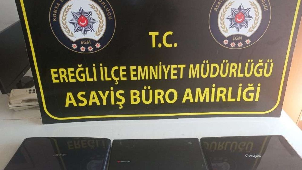 Edinilen bilgiye göre, ilçede meydana gelen hırsızlık olayları ile ilgili Ereğli İlçe Emniyet Müdürlüğü Asayiş Şube Amirliği ekipleri çalışma başlattı. Yapılan araştırmalarda farklı zamanlarda meydana gelen 3 ayrı iş yeri ve kurumdan hırsızlık olayı ile ilgili olarak ilçede faaliyet gösteren 2 iş yerinde çalıntı 3 dizüstü bilgisayar ele geçirildi. Olayın şüphelisinin U.B. (37) olduğu tespit edilirken, dizüstü bilgisayarlar sahiplerine teslim edildi. İki iş yeri sahibi hakkında Suç Eşyasının Satın Alınması veya Kabul Edilmesi suçundan tahkikat başlatılırken, şüpheli U.B. Halkapınar ilçesinde bir ikamette yakalandı. Şüphelinin başka illerdeki 2 ayrı hırsızlıktan da arandığı tespit edildi. Emniyette işlemleri tamamlanarak adliyeye sevk edilen U.B. çıkarıldığı mahkemece tutuklanarak cezaevine gönderildi.