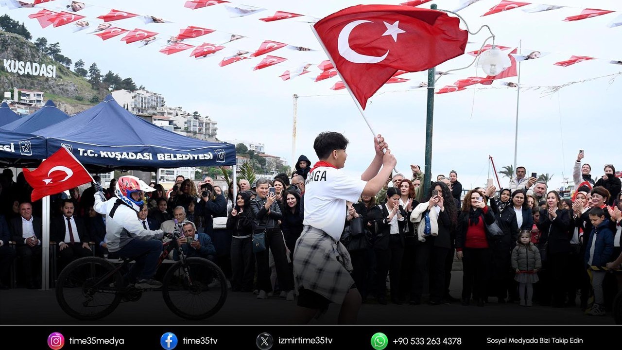 Resmî törene; Kuşadası Kaymakamı İbrahim Keklik, Kuşadası Belediye Başkan Vekili Tahsin Demirtaş ve kentte görev yapan idari amirler, siyasi parti ve sivil toplum kuruluşlarının temsilcileri ile çok sayıda Kuşadalı katıldı. Geçtiğimiz günlerde Şanlıurfa ve Kahramanmaraş’ta maydana gelen okul saldırılarında hayatına kaybeden öğretmen ve öğrenciler için saygı duruşunda bulunulması ve İstiklal Marşı'nın okunmasının ardından Kaymakam İbrahim Keklik ve Başkan Vekili Tahsin Demirtaş, kent genelindeki okullardan gelerek törene katılan öğrencilerin bayramını kutladı. Öğrenciler ile okulların sergilediği halk oyunları ve çeşitli gösteriler, protokol üyeleri tarafından alkış alırken Pakize Kamil Çağlayan Otaokulu öğrencilerinin sergilediği bisiklet-kaykay-grafiti gösterisi büyük beğeni topladı.