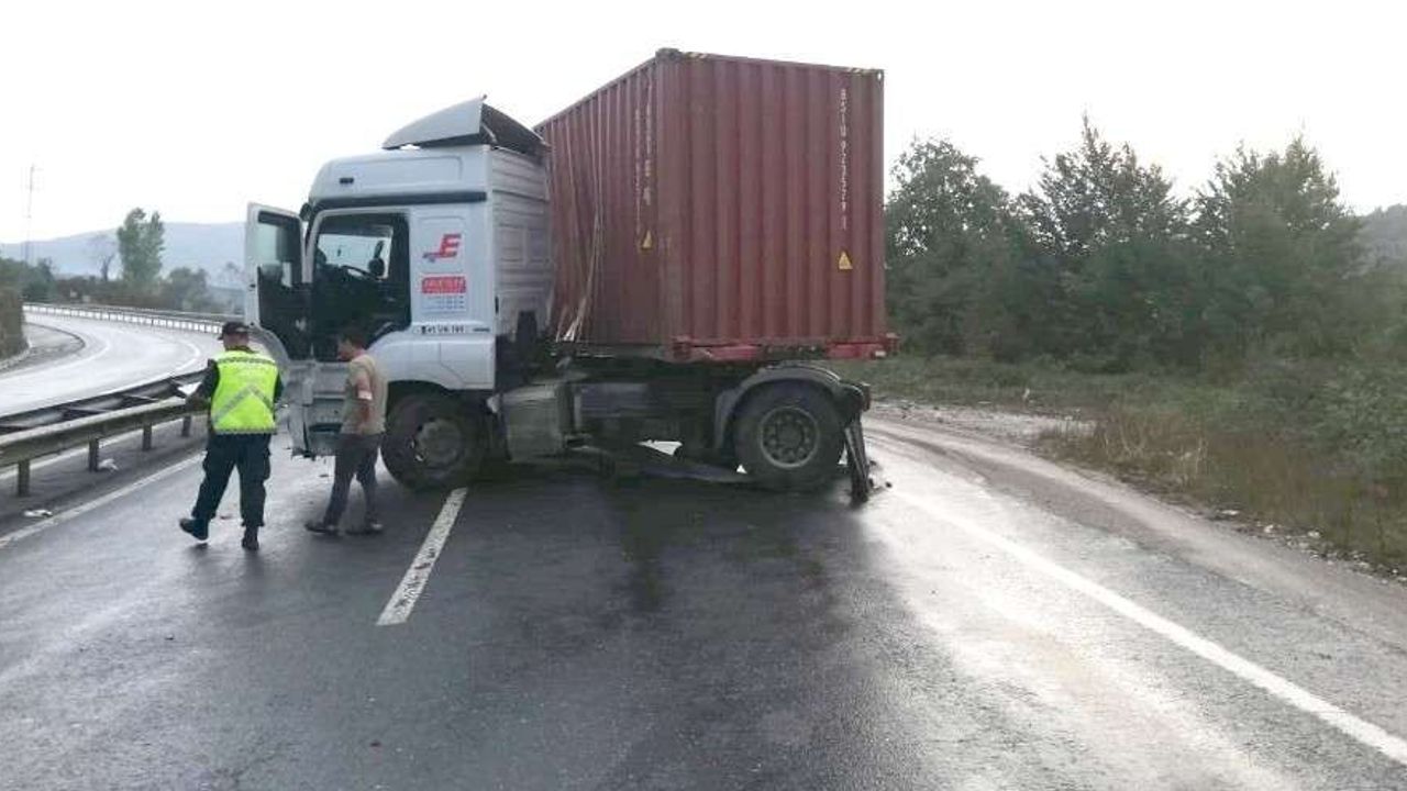 Makaslayan tır D-655 karayolunda trafiğin aksamasına neden oldu