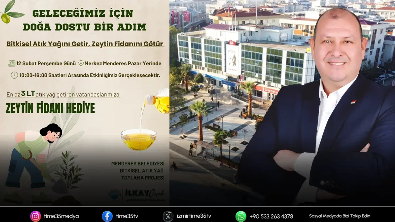 Menderes Belediyesi İklim Değişikliği ve Sıfır Atık Müdürlüğü, doğa için yeni bir kampanya başlatıyor. “Geleceğimiz İçin Doğa Dostu Bir Adım” sloganı ile duyurulan kampanyada bitkisel atık yağın getirene zeytin fidanı hediye edilecek. Her 3 litre yağ için bir fidan verileceği belirtildi. Yapılan duyuruda atık yağlar için toplama etkinliği gerçekleştirileceği ifade edildi. 12 Şubat Perşembe günü saat 10:00 – 16:00 arasında gerçekleşecek olan etkinlik Menderes Merkez Pazaryeri’nde yapılacak. Etkinlikte bitkisel atık yağlar teslim alınıp fidanlar teslim edilecek.