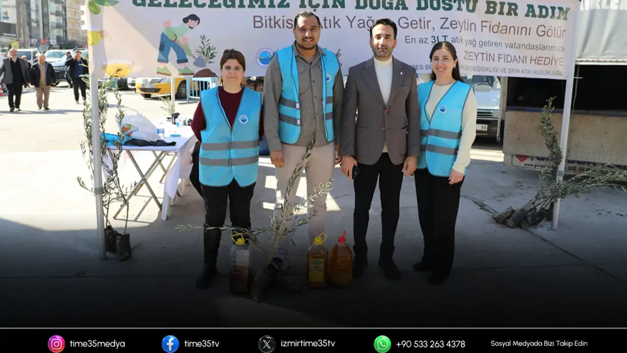 Menderes Belediyesi İklim Değişikliği ve Sıfır Atık Müdürlüğü, başlatmış olduğu büyük atık yağ toplama kampanyasında “Bitkisel yağını getir, zeytin fidanını götür” sloganı ile toplama faaliyetini gerçekleştirdi. Merkez pazaryerine kurulan stantta belediye ekipleri gelen vatandaşlardan yağları teslim aldı. Teslim alının her 3 litre yağ karşılığında 1 adet zeytin fidanı hediye edildi. Menderes Belediyesi’nin kampanyasına destek vermek isteyen Güzelyalı Rotaract Kulübü de stantta yer aldı.