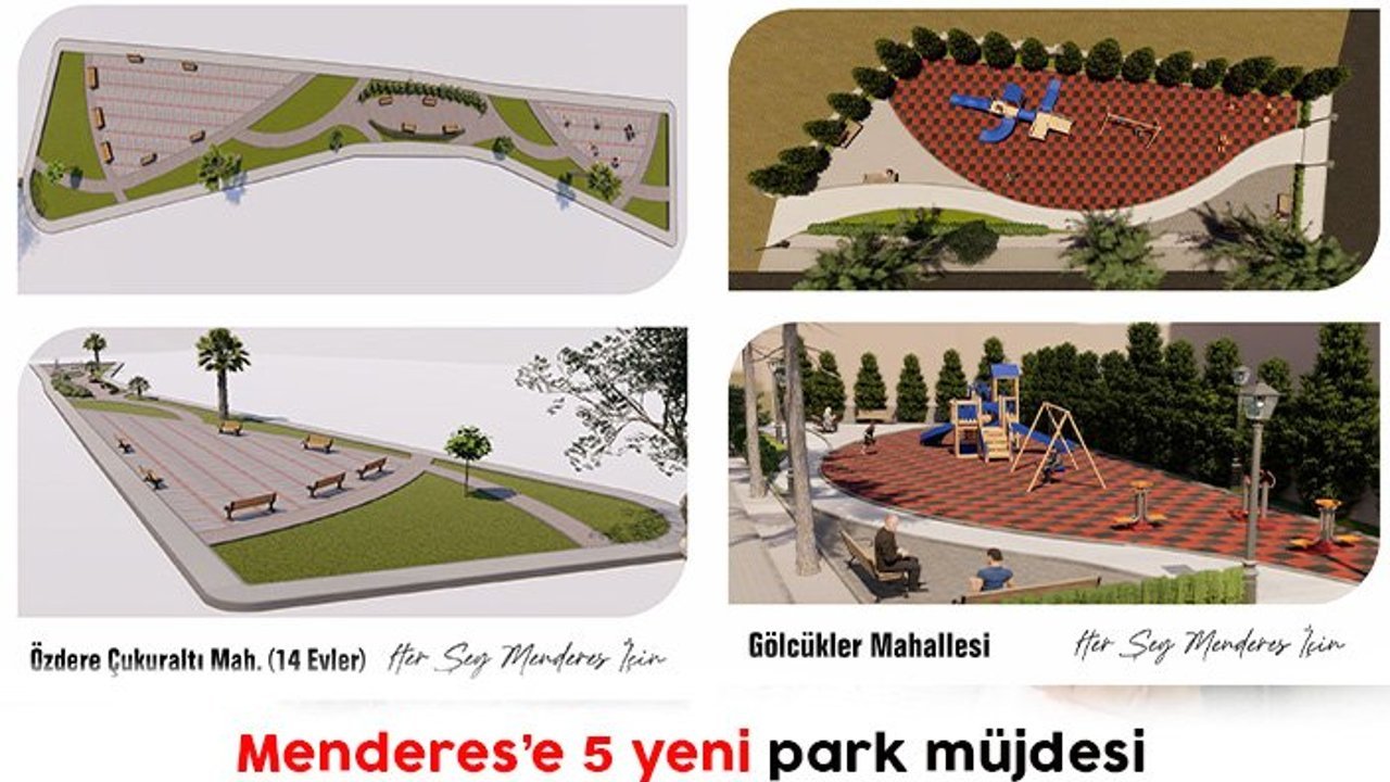 Menderes Belediyesi ilçeye 5 yeni park kazandırmak için çalışmalarına hız kesmeden devam ediyor.