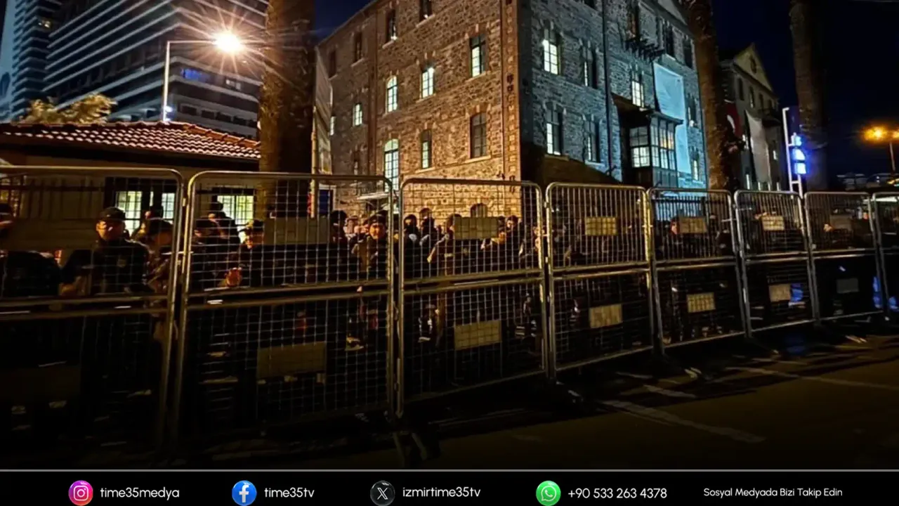 Güvenlik güçleri bina çevresinde yoğun önlem alırken, giriş ve çıkış noktaları tamamen kapatıldı. Fabrika önüne bariyerler yerleştirilirken, içeride bulunan İzmir Büyükşehir Belediyesi çalışanlarının dışarı çıkmasına izin verilmediği belirtildi.