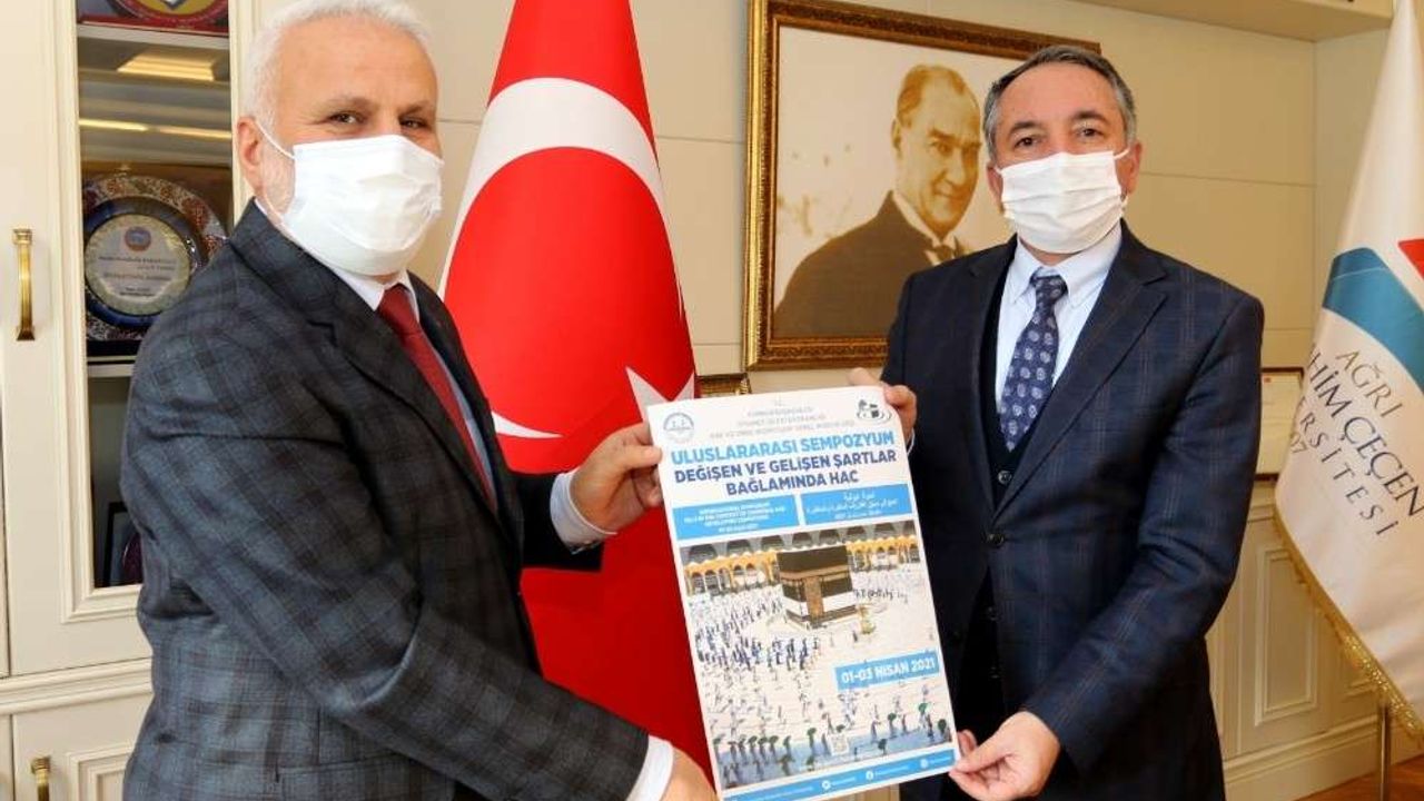İl Müftüsü Tandoğan Topçu gerçekleştirdiği ziyaretlerde, Diyanet İşleri Başkanlığı Hac ve Umre Hizmetleri Genel Müdürlüğü tarafından 1-3 Nisan 2021’de yapılacak olan “Değişen ve Gelişen Şartlar Bağlamında Hac” başlıklı Uluslararası Sempozyum hakkında bilgi vererek, Rektör Karabulut ve Dekan Yerinde’den düzenlenecek olan sempozyumun bilim insanlarına ve araştırmacılara duyurulması yönünde destek talebinde bulunarak kendilerini de davet etti.
