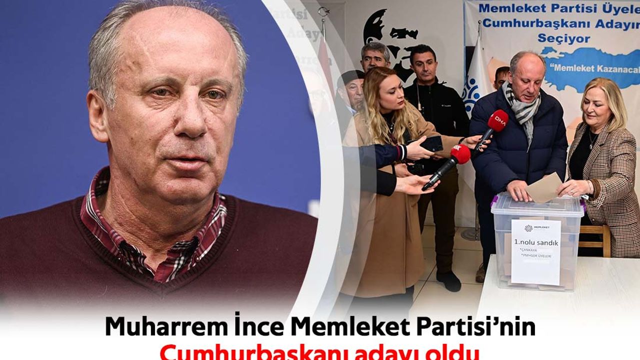 Muharrem İnce’nin Genel Başkanı olduğu Memleket Partisi’nde, cumhurbaşkanı adayı, üyelerinin oylarıyla belirlendi.