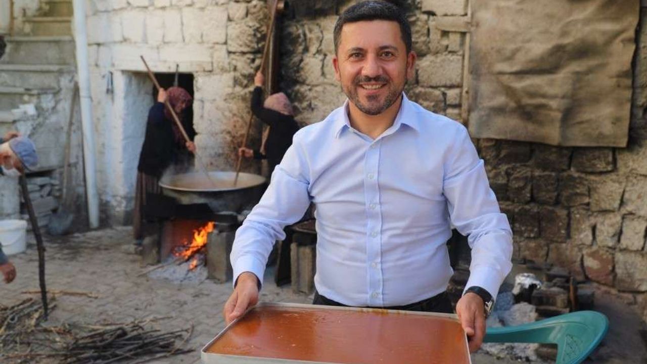 Burada İsmail Candan (62) isimli çiftçinin ailesi ile birlikte evlerinin bahçesinde gerçekleştirdikleri köftür yapımını bir süre izleyen Arı, ocak başında köylülerle birlikte pekmez kaynattı.
