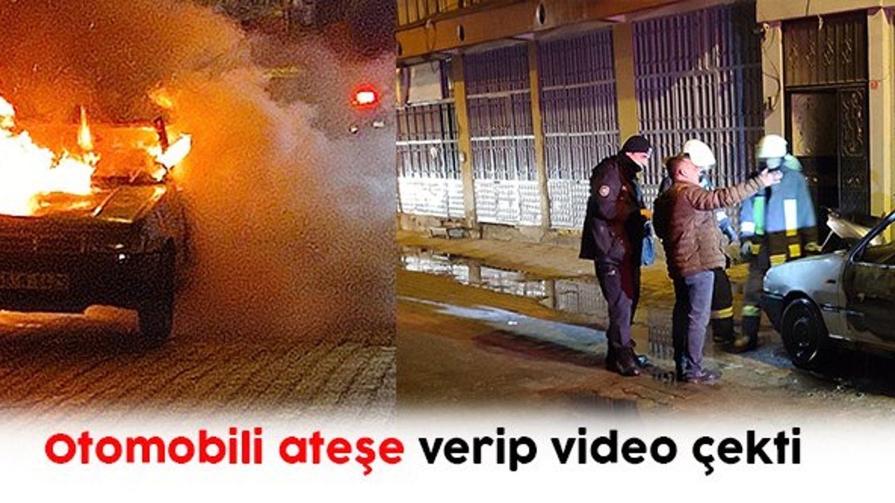 Otomobili ateşe verip video çekti