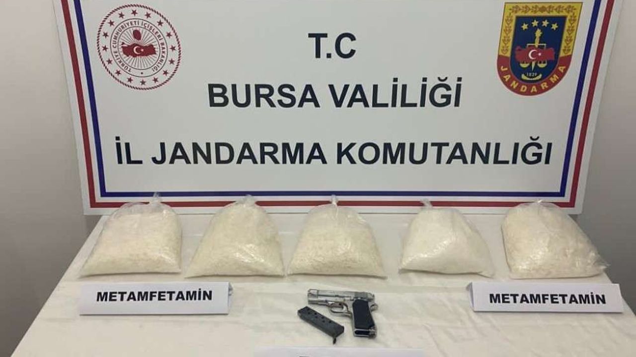 Edinilen bilgiye göre, yüklü miktarda satışa hazır metamfetamin maddesinin Bursa’ya getirileceği bilgisini alan Bursa İl Jandarma Komutanlığı ekipleri, Orhaneli İlçe Jandarma komutanlığı ekipleri ile birlikte Orhaneli ilçesi Yürücekler Mahallesi Orhaneli-Bursa karayolu üzerinde 01 plakalı bir otomobili durdurdu. Yapılan aramalarda otomobil içerisinde zula diye tabir edilen farklı bölgelere gizlenmiş 1’ er kilogramlık şeffaf poşetler içerisinde toplam 5 kilogram metamfetamin ele geçirildi. Olayla ilgili H.A. ve M.S. isimli 2 şahıs gözaltına alındı. Olayla ilgili tahkikat sürüyor.