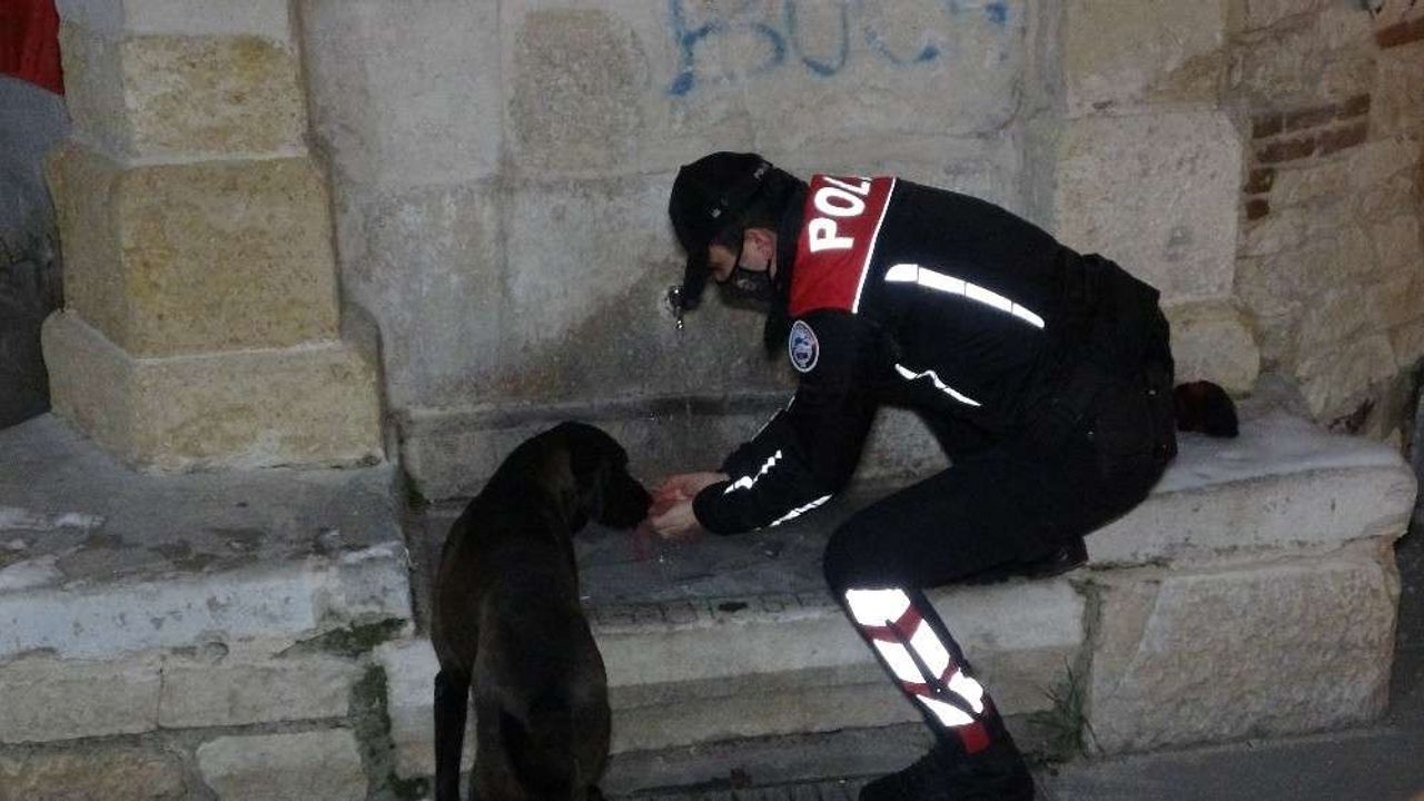 Uşak’ta polisler havaların soğumasıyla birlikte sokakta yaşayan hayvanların üstlerini battaniyeyle örterken mama kaplarına da mama koydu. Ayrıca bir polis, havanın eksi 10 santigrat derece elleriyle köpeğe su verdi.