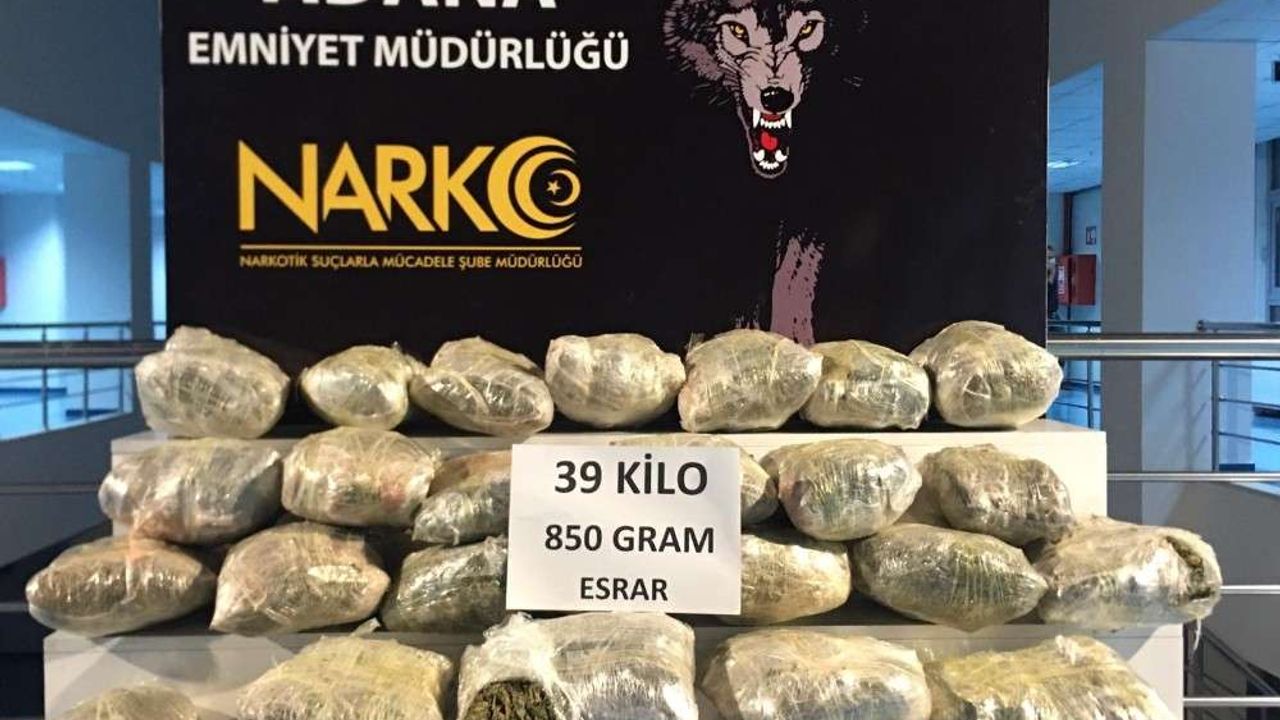 Adana Emniyet Müdürlüğü Narkotik Suçlarla Mücadele Şube Müdürlüğü ekipleri Doğu illerinden gelen bir araçta uyuşturucu olduğu bilgisine ulaştı. Polis bu bilgi üzerine şehrin giriş ve çıkışlarında önlem aldı. Polis TAG otoyolunda araç gelince durdurup arama başlattı. Yapılan aramada hassas burunlu narkotik köpeği, torbalara tepki verdi. Polis torbaları açtığında bidonlarda dondurulmuş “şırdan” taşındığını tespit etti. 7 bidon açılıp kontrol edildiğinde 39 kilo 850 gram esrar ele geçirildi.