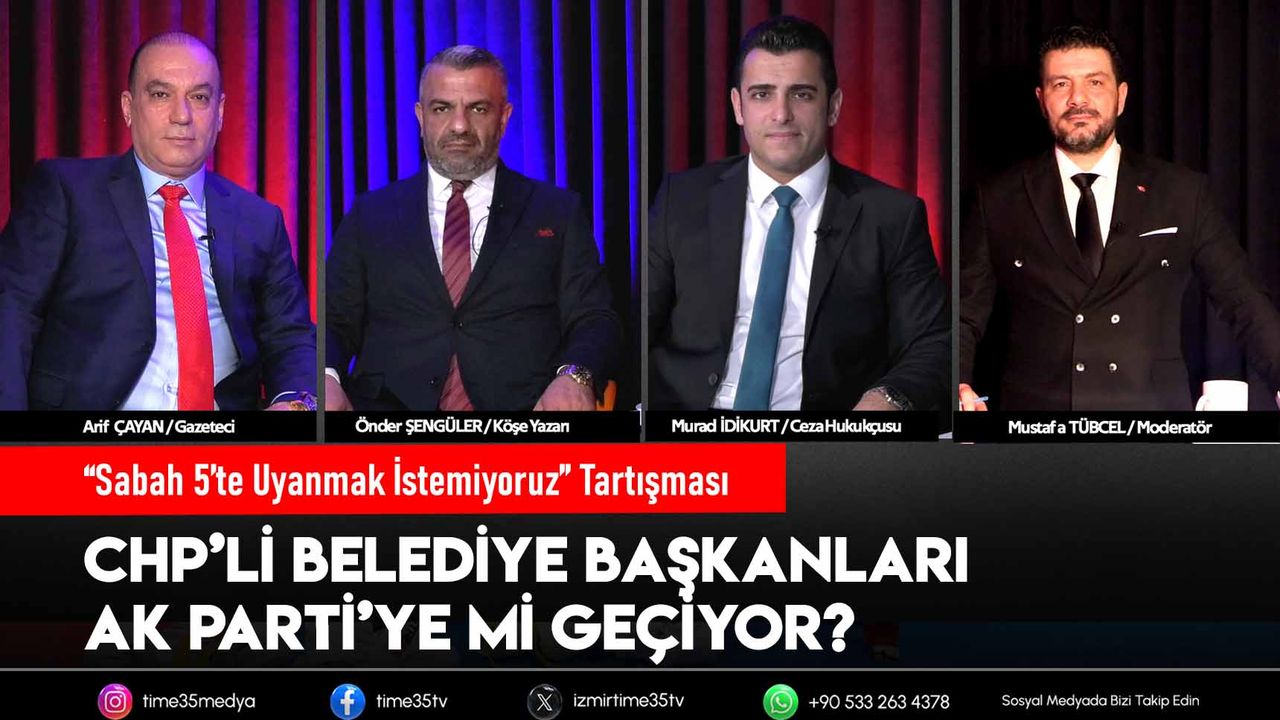 İzmir siyasetinde son günlerde dikkat çeken bir iddia kamuoyunda geniş yankı uyandırdı. Time35 TV’de Gündemin Nabzı programında konuşan gazeteci ve yorumcular, bazı Cumhuriyet Halk Partili (CHP) belediye başkanlarının AK Parti’ye geçmek için kulis yaptığı yönünde ciddi iddialar ortaya attı.