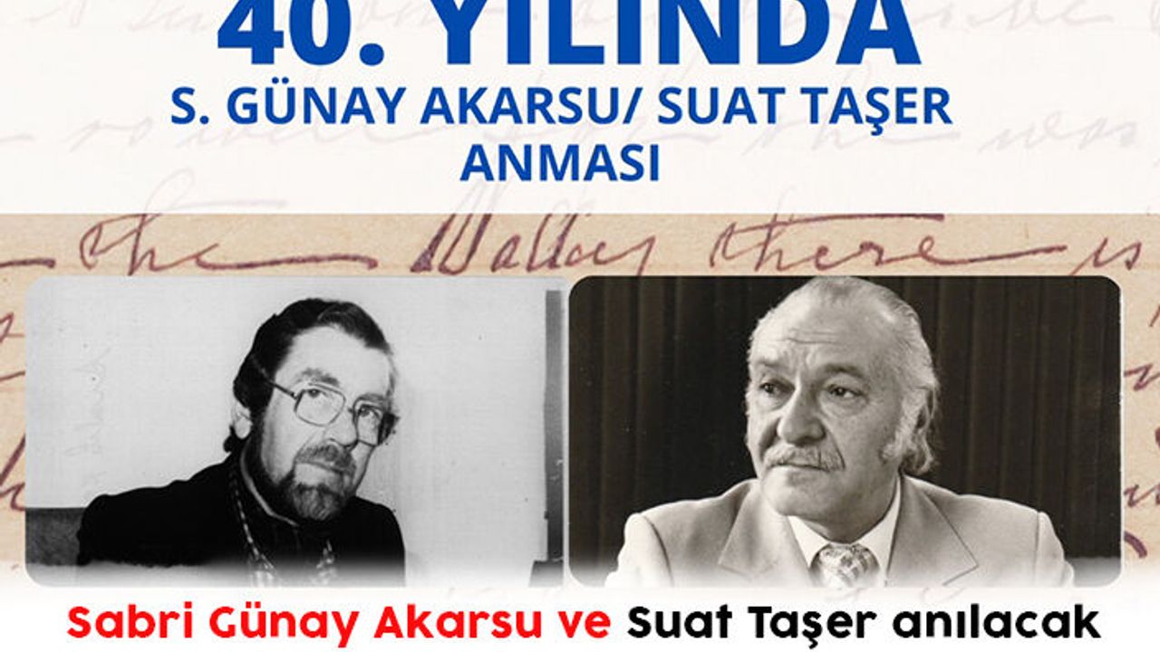 İzmir Büyükşehir Belediyesi tiyatro eleştirmeni, yayıncı Sabri Günay Akarsu ile tiyatro oyuncusu, şair, çevirmen Suat Taşer’i vefatlarının 40. yılında anacak. Merhaba - Öykü Tiyatro Toplulukları ve İzmir Tiyatroları Derneği işbirliği ile düzenlen anma programı 26 Mayıs 2022 Perşembe günü saat 19.00’da Tarihi Bıçakçı Han’da yapılacak. Organizasyon ve sunumunu İzmir Tiyatroları Derneği Yönetim Kurulu ve İzmir Büyükşehir Belediyesi Şehir Tiyatroları Danışma Kurulu Üyesi Bilgehan Oğuz’un yapacağı programda Orhan Kazbek, Özgür Başkaya, Huriye Taşer, Deniz Üstüngel, Hüseyin Yurttaş, Müjde Bilir, Galip Çevik, Emel Aksaylı, Yücelay Sal, Doç. Dr. Efdal Sevinçli, Prof. Dr. Murat Tuncay Suat Taşer ve Sabri Günay Akarsu’nun 70’li ve 80’li yıllarda İzmir’de tiyatro alanında yaptığı çalışmaları aktaracak.