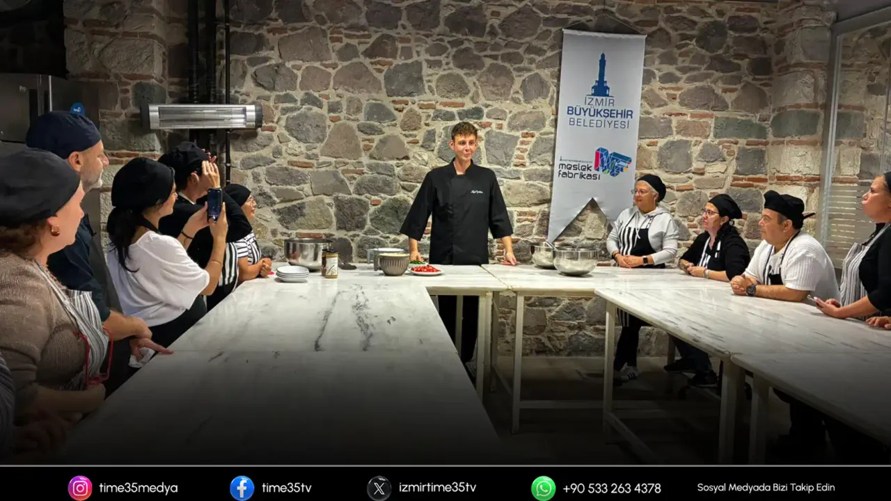 İzmir Büyükşehir Belediyesi’nin Meslek Fabrikası’nda düzenlediği sağır ve işitme engelli kursiyerlere yönelik pastacı çıraklığı kursundan mezun olan kursiyerler, İzmir Çeşme’de restoranı bulunan ve sosyal medya platformlarında birbirinden özel tariflerini paylaşan şef Rıfat Yurttaş ile buluştu. Engelli Çalışmaları Şube Müdürlüğü’nde görevli işaret dili çevirmenleri Özlem Özer ve Melek Uslular’ın çevirmenliğiyle katılımcılarla iletişim kuran Yurttaş, onlarla birlikte Ege mutfağına ait meze ve zeytinyağlı yemekler yaptı.