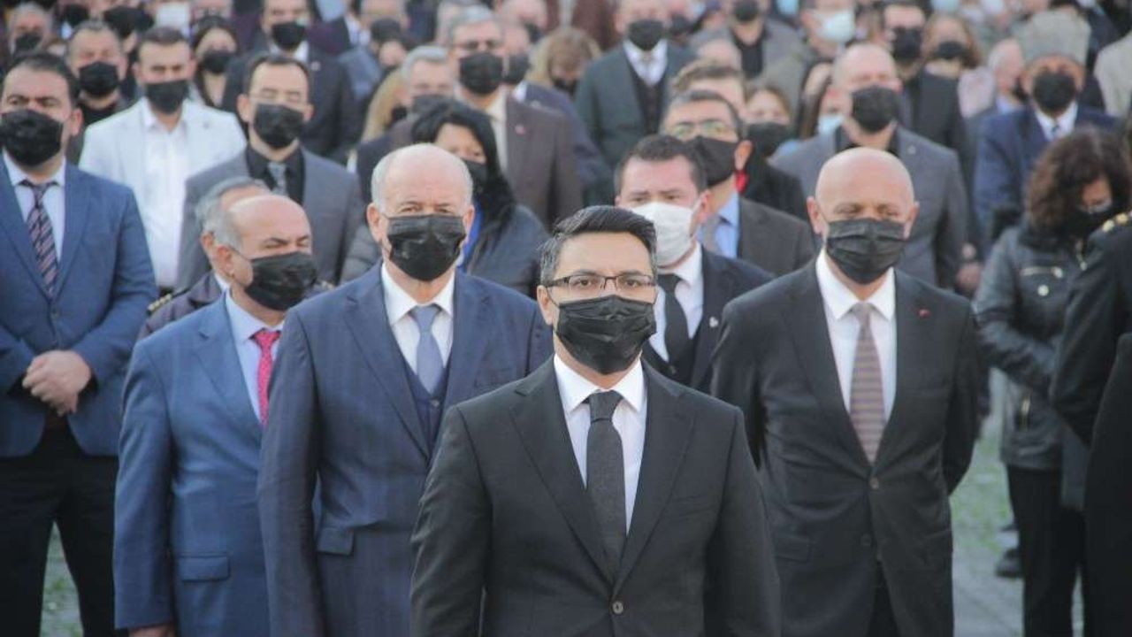 Balıkesir’in Edremit ilçesinde Atatürk’ün ölümünün 82. yılında düzenlenen törenlerde tüm katılımcılar siyah maske taktı. Pandemi sürecinde gerçekleşen anma töreni sosyal mesafe kuralı ile gerçekleştirildi.