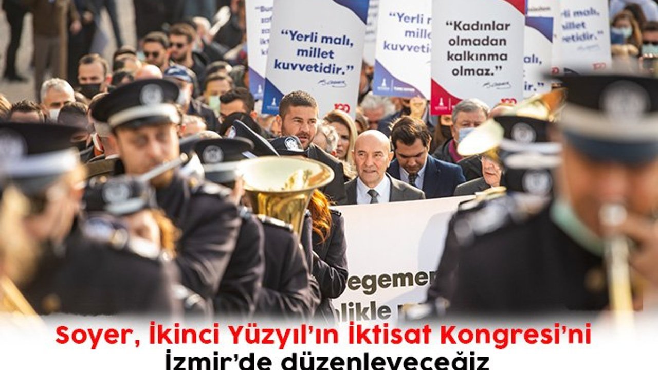 İzmir Büyükşehir Belediye Başkanı Tunç Soyer, Gazi Mustafa Kemal Atatürk önderliğinde genç Cumhuriyetin iktisadi rotasını belirlemek üzere 17 Şubat-4 Mart 1923 tarihleri arasında düzenlenmiş Türkiye (İzmir) İktisat Kongresi’nin 99. yıl dönümü etkinliklerine katıldı. Kemeraltı’ndaki İktisat Kongresi Anıtı'na çelenk koyma töreniyle başlayan programın ardından Ahmet Piriştina Kent Arşivi ve Müzesi (APİKAM) binasına bando eşliğinde kortej yürüyüşü yapıldı. APİKAM’da düzenlenen, Dr. Serdar Şahinkaya ile Dr. Ahmet Mehmetefendioğlu’nun konuşmacı olduğu “Türkiye (İzmir) İktisat Kongresi 99 Yaşında” başlıklı panelde konuşan Başkan Tunç Soyer, 2023 yılını işaret ederek “İlk defa müjdelemek istiyorum ki; İkinci Yüzyıl’ın İktisat Kongresi’ni tam bir yıl sonra burada, anlamına uygun şekilde düzenleyeceğiz. Cumhuriyetimizin ikinci yüzyılında, kongremizi tıpkı bir asır önce olduğu gibi çiftçilerimizin, işçilerimizin, sanayicimizin ve ticaret dünyamızın katılımıyla gerçekleştireceğiz. Ortak akılla ekonomik bağımsızlığımızı yeniden inşa edeceğiz” dedi.