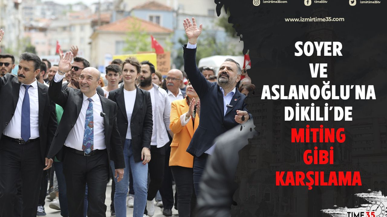 Seçim sürecinin değerlendirildiği toplantı sonrasında her iki başkan Dikili Atatürk Meydanı’nda genci yaşlısı çok sayıda vatandaş tarafından coşkuyla karşılandı. Miting havasında geçen buluşma sonrasında İzmir Büyükşehir Belediye Başkanı Tunç Soyer, CHP İzmir İl Başkanı Şenol Aslanoğlu, Dikili Belediye Başkanı Adil Kırgöz, CHP Dikili İlçe Başkanı Emre Kırlı, ilçe örgütü ve binlerce vatandaş “Halkın Umudu Kılıçdaroğlu”, “Hak, Hukuk, Adalet”, “Birleşe Birleşe Kazanacağız” sloganları eşliğinde Dikili sokaklarında yürüyerek esnafı ziyaret ettiler. Çevre ve apartmanlardaki vatandaşlar sokaklara sığmayan coşkulu kalabalığa destek verdiler.
