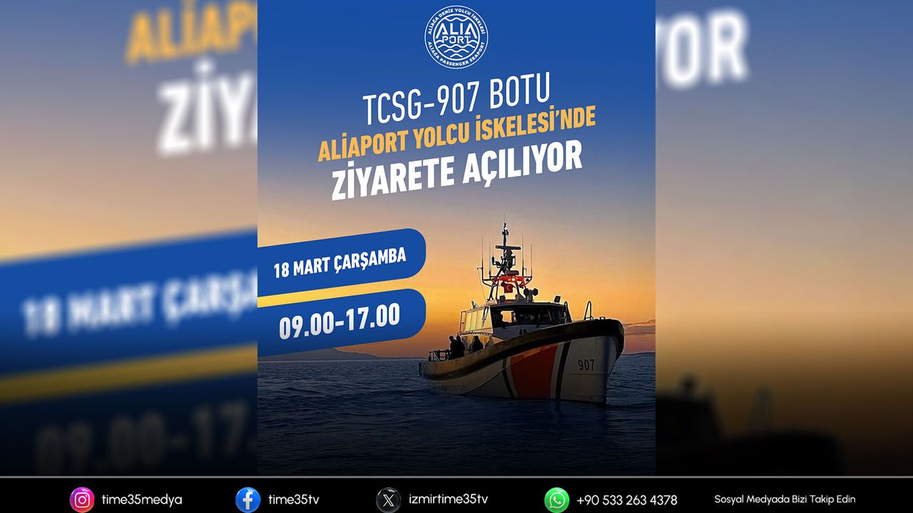 Aliağa’da da 18 Mart Çanakkale Deniz Zaferi’nin 111’inci yıl dönümü dolayısıyla kentte çeşitli etkinlikler düzenlenmeye devam ediyor. Etkinlikler kapsamında Sahil Güvenlik Komutanlığı’na ait TCSG-907 botu, 18 Mart 2026 Çarşamba günü 09.00–17.00 saatleri arasında Aliağa Aliaport Deniz Yolcu İskelesi’nde vatandaşların ziyaretine açılıyor.