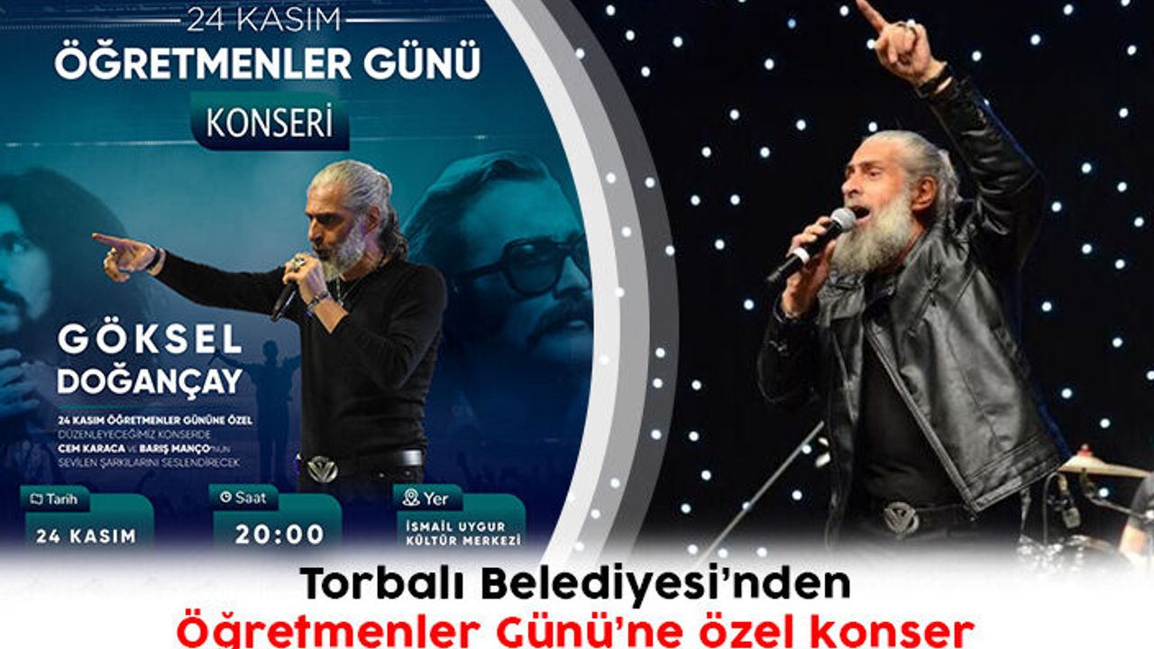 Torbalı’da Öğretmenler Günü çeşitli etkinlikler ile kutlanacak. Bu kapsamda Torbalı Belediyesi 24 Kasım Öğretmenler Günü’ne özel konser düzenliyor. Belediye Başkanı Mithat Tekin’in talimatı ile yarın akşam İsmail Uygur Kültür Merkezi’nde gerçekleşecek olan konserde Göksel Doğançay sahne alacak.