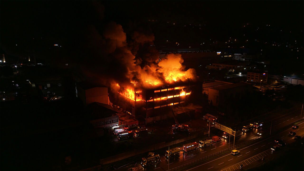 Trabzon’un Arsin Organize Sanayi Bölgesi’nde faaliyet gösteren bir fındık fabrikasında çıkan yangın, ekiplerin yoğun müdahalesine rağmen soğutma çalışmaları sırasında yeniden alevlendi. Kısa sürede büyüyen yangın, fabrikanın büyük bölümünü sararken, bölgeye çok sayıda itfaiye ekibi takviye gönderildi. Yangının kontrol altına alınması için çalışmalar aralıksız sürdürülürken, ekipler alevlerin çevredeki diğer tesislere sıçramaması için yoğun çaba harcıyor. Zaman zaman etkisini artıran yangın nedeniyle fabrikanın çevresinde geniş güvenlik önlemleri alındı. Yangının alevlendiği anları ve ekiplerin müdahalesi dronla görüntülendi.