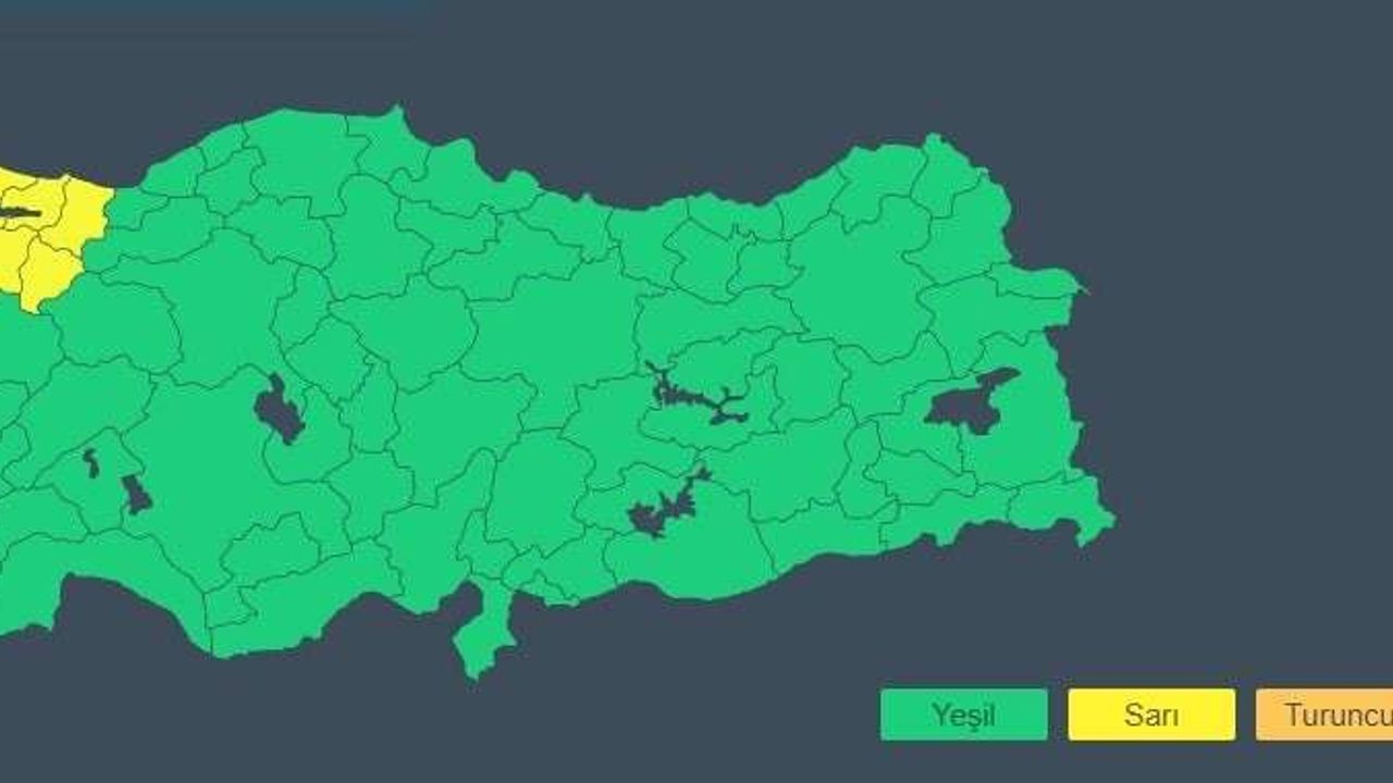 Meteoroloji Genel Müdürlüğünce sarı kodla yapılan uyarı haritası Tekirdağ, Edirne ve Kırklareli illerini de kapsıyor.