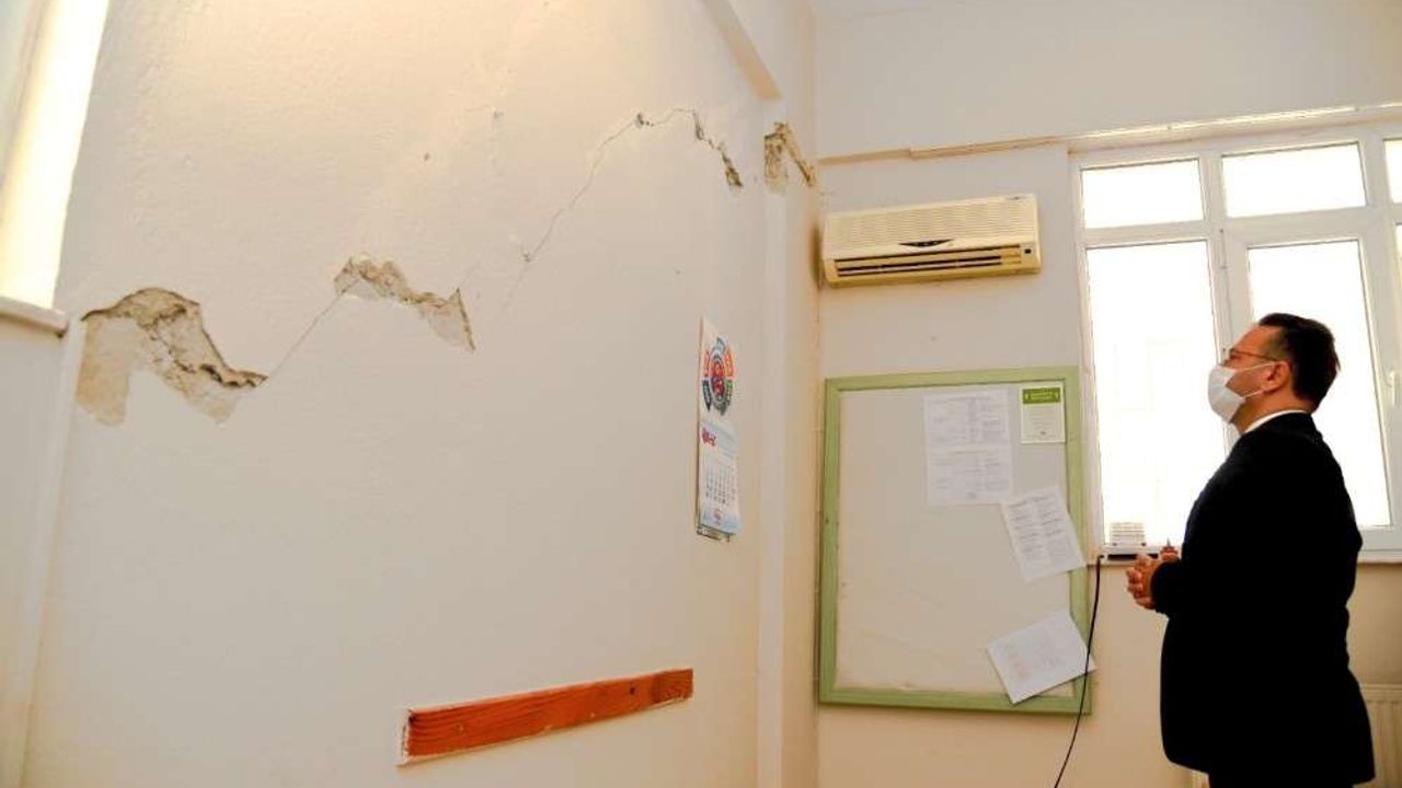 Vali Aksoy, depremde hasar gören okul binasında incelemede bulundu
