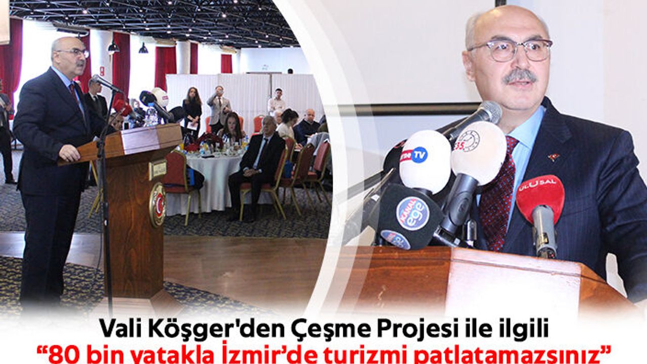 Hitabının ardından gazetecilerin sorduğu soruları yanıtlayan Vali Köşger, “Çeşme Projesi, İzmir’e seviye atlatacak bir proje. İzmir’de 80 bin yatak var. Bunun 40 bini turistik belgeli nitelikli yatakken, 40 bini belediye belgeli. 80 bin yatakla İzmir’de turizmi patlatamazsınız. Tanıtmaya çalışırsanız da birinci sene patlattığınızda ikinci sene rezil olursunuz. O yüzden nitelikli yatak sayısını artırmamız lazım. Önümüzde böyle bir proje var ve bu bütün taraflarla istişare edilerek yürütülüyor. Oradan alınan geri beslemelerle proje revize ediliyor. Bütün unsurlar düşünülüyor” diye konuştu.