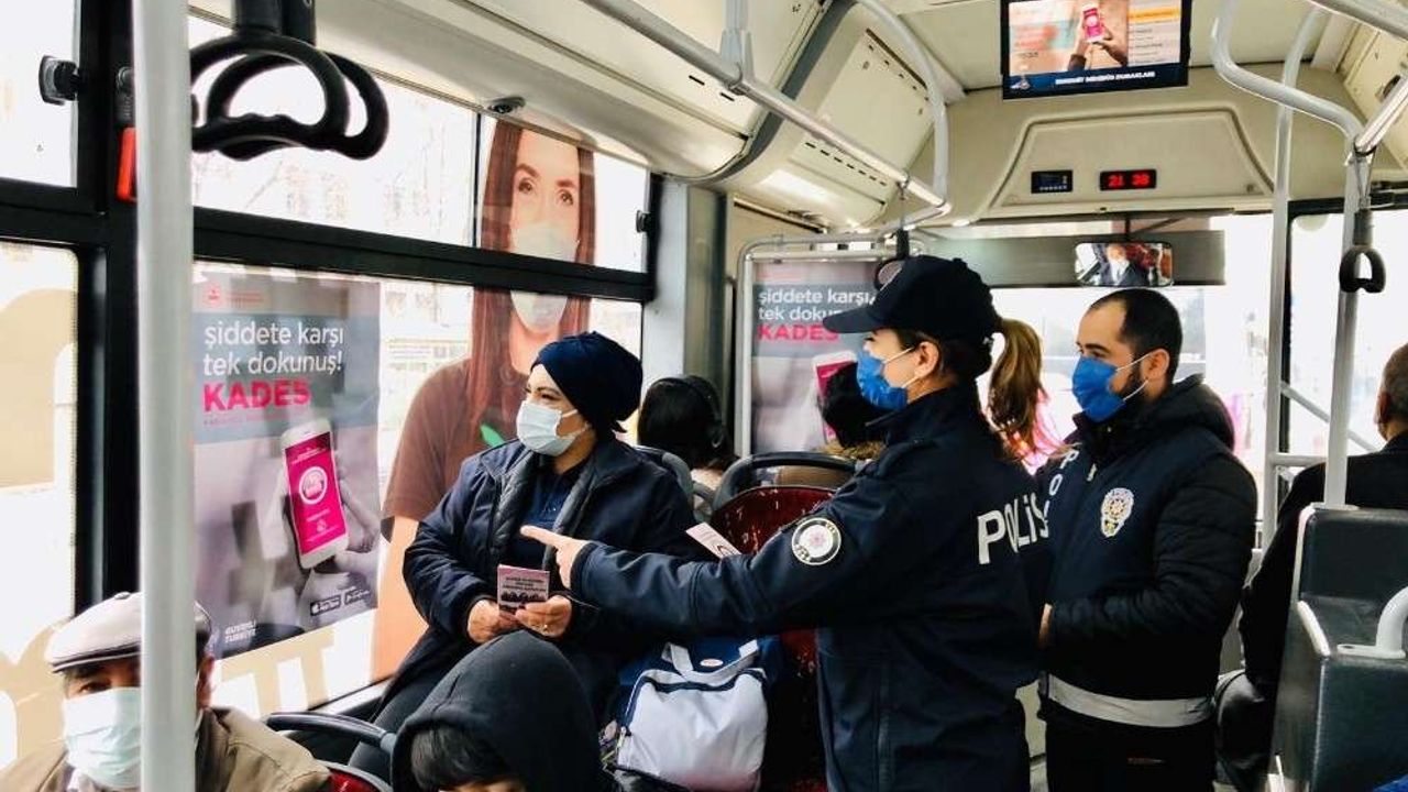 Büyükşehir Belediyesi Ulaşım Dairesi Başkanlığı ile irtibata geçilerek KADES afişleri belediye otobüslerine asılmış ve KADES tanıtım videolarının otobüslerde oynatılması sağlanmıştır. Aile İçi ve Kadına Karşı Şiddetle Mücadele Büro Amirliği personelimizce Van Büyükşehir Belediyesi toplu taşıma araçlarını kullanan kadın vatandaşlarımıza broşür dağıtımı yapılarak 2021 yılı toplumsal farkındalık, duyarlılık, bilinç kazandırma, kadına karşı şiddetle mücadelede etkin rol alınması ve KADES uygulaması hakkında bilgilendirmeler yapılmıştır” denildi.
