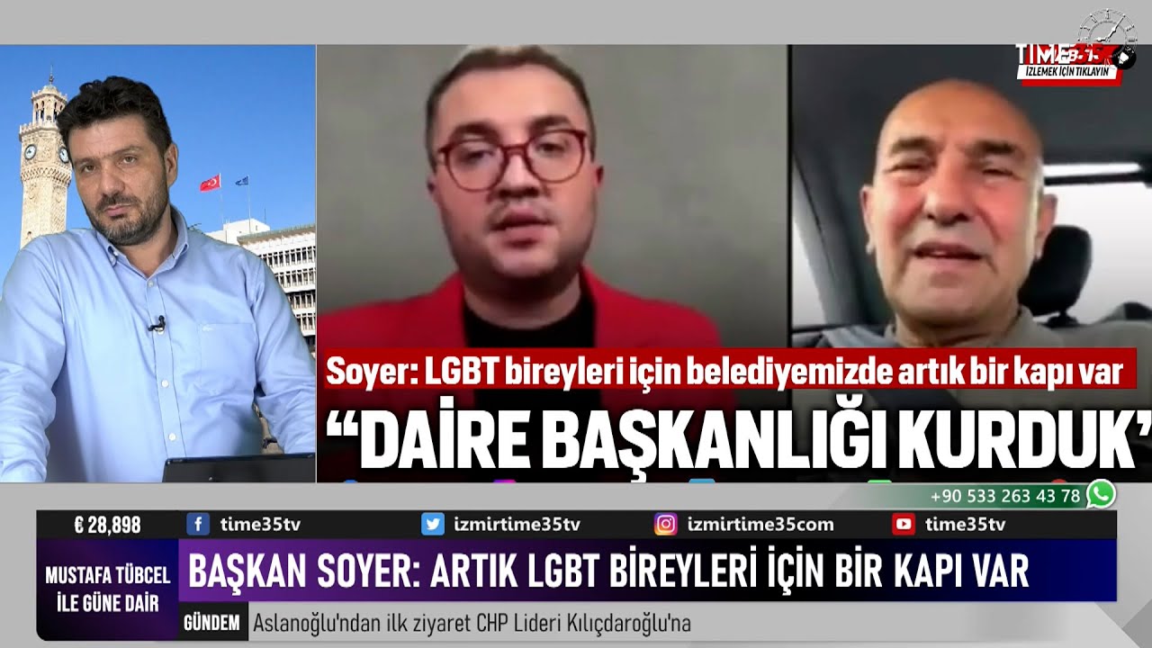 Tunç Soyer LGBT üyesi bir kişi ile yaptığı görüntülü konuşmada şunları söyledi; "Bizim belki de Türkiye'de ilk kez kurduğumuz daire başkanlığı var; Kentsel eşitlik ve...