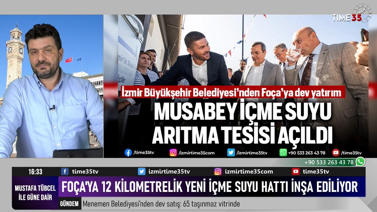 11 milyon metreküp kapasiteli Musabey İçme Suyu Arıtma Tesisi açıldı İzmir Büyükşehir Belediyesi’nden Foça’ya dev yatırım İzmir Büyükşehir Belediye Başkanı Tunç Soyer, 140 milyon liralık yatırımla Foça’da yüz elli bin kişiye içme suyu sağlayacak Musabey İçme Suyu Arıtma Tesisi’ni hizmete aldı.