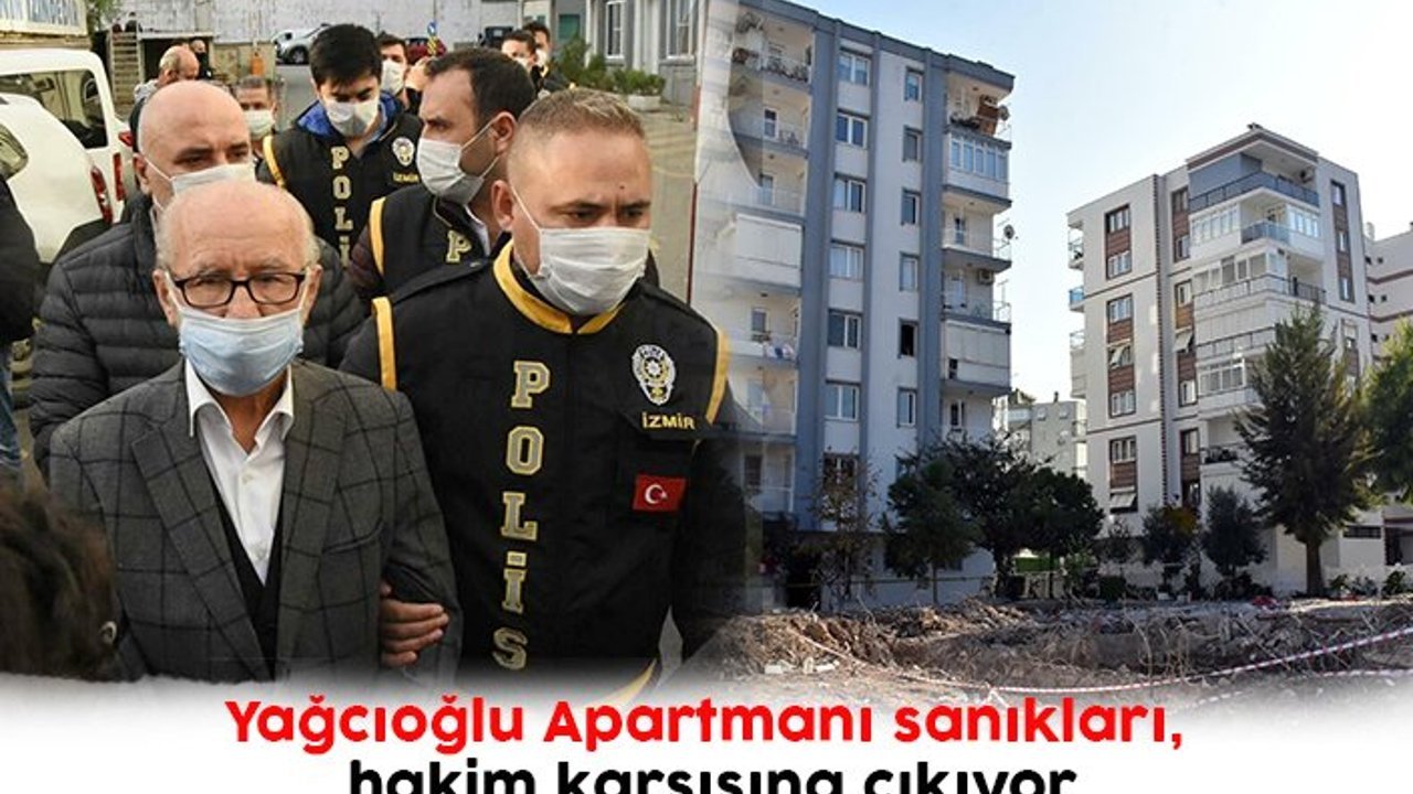 İzmir'de, geçen yıl 30 Ekim'de meydana gelen 6.6'lık depremde 11 kişinin yaşamını yitirdiği Yağcıoğlu Apartmanı'nın fenni mesulü Orhan Ayber (80) ve müteahhidi Şerafettin Ağar (71), 'bilinçli taksirle birden fazla kişinin ölümüne ve yaralanmasına neden olmak' suçlamasıyla tutuklu yargılandıkları davada bugün hakim karşısına çıkacak.
