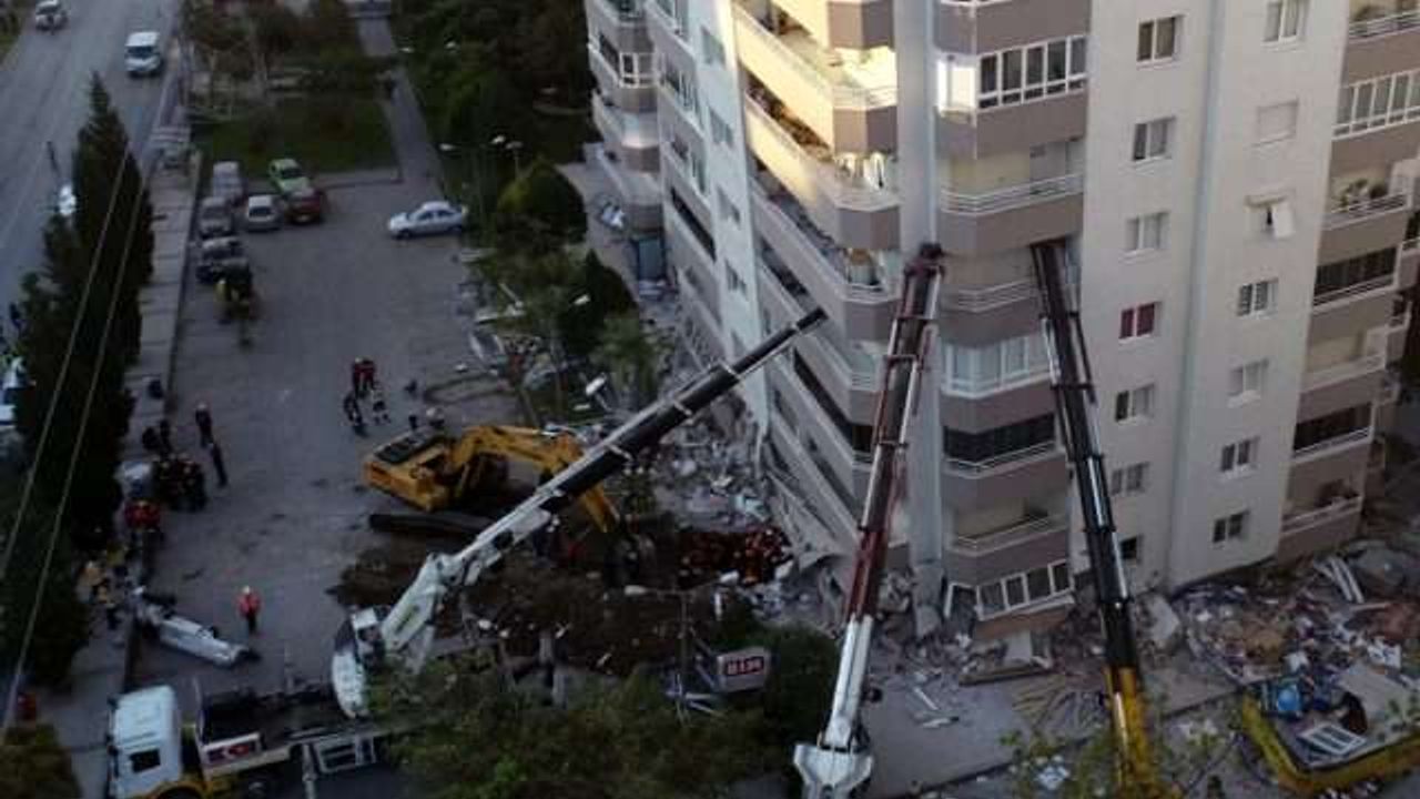 İzmir'in Seferihisar açıklarında meydana gelen 6.9 büyüklüğündeki depremde, ilk 3 katı çöküp yan yatan 11 katlı binada yapılan arama kurtarma çalışması sırasında vinçlerle destek sağlandı. Binanın yıkılmaması için 3 vinçle destek verildi. Ege Denizi´nde Seferihisar açıklarında meydana gelen depremde Bayraklı ilçesinde bulunan Demirkent Sitesi'ndeki bir binanın ilk 3 katı çöktü. En alt katında iş yerlerinin bulunduğu bina yan yattı. Ekipler, çöken bölümde arama kurtarma çalışması başlattı. Bazı kişilerin yaralı olarak kurtarıldığı bina, çökme ihtimaline karşın vinçlerle desteklendi. Üç vinç ile binaya destek verildi. Ekiplerin binanın alt katlarındaki arama kurtarma çalışmaları sürüyor.
