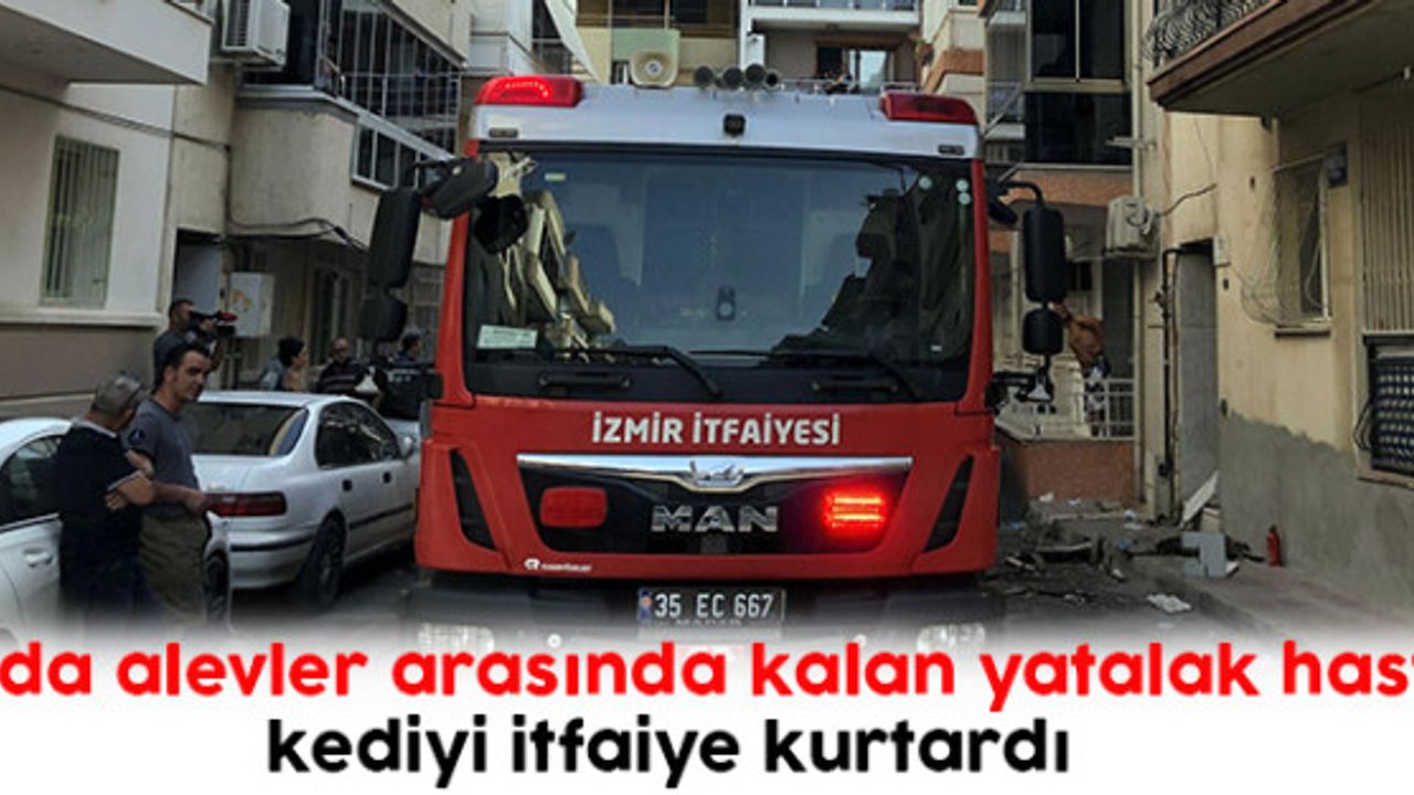 İzmir’in Balçova ilçesinde bir apartman dairesinde çıkan yangında alevler arasında mahsur kalan yatalak hasta Emine Yılmaz (85) ve bir kedi, itfaiye ekipleri tarafından kurtarıldı.