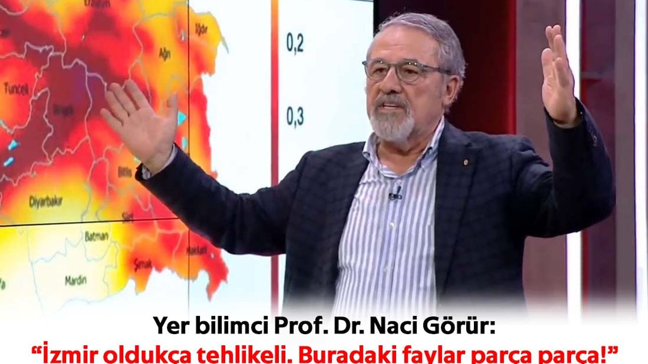 Yer bilimci Prof. Dr. Naci Görür, FOX TV canlı yayınında Selçuk Tepeli'nin programına katılarak İzmir hakkında önemli açıklamalarda bulundu. İzmir Körfezi’nden doğu-batı yönünde giden fayın tehlikeli olduğuna dikkat çeken Görür, ''Asıl İzmir’de büyük tehlike yaratacak İzmir fayıdır. Körfez’in kıyısında yapılan binalar bataklık bir zemin üzerinde bilinçsizce inşa edilmiştir. Bu nasıl olmuş? Nasıl müsaade edilmiş? Anlaşılır değil'' dedi.