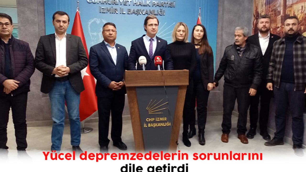 Yücel, "Bir Cumhurbaşkanı düşünün ki, deprem konutları teslim töreni düzenliyor. Bu törene Bakanları, Genel Başkan Yardımcıları, Milletvekilleri katılıyor. Sahneye 6 tane depremzede davet edilerek kendilerine anahtar teslim ediliyor. Tüm bunlar İzmir kamuoyunun önünde adeta bir tiyatro niteliğinde sergileniyor. Cumhurbaşkanı şovunu yapıyor ve gidiyor. Her zaman olduğu gibi bu tören de sadece şovdan ibaret kalıyor. Bitirildiği söylenilen konutların balkonlarına çiçek saksıları yerleştirilerek, basına “Daireler bitirilmiş, teslim edilmiş” görüntüsü veriliyor ancak teslim edilen 1 tek daire bile yok. Bitirilen 1 tek daire bile yok. Sıcak yuvasına kavuşan 1 tek depremzede bile yok” dedi.