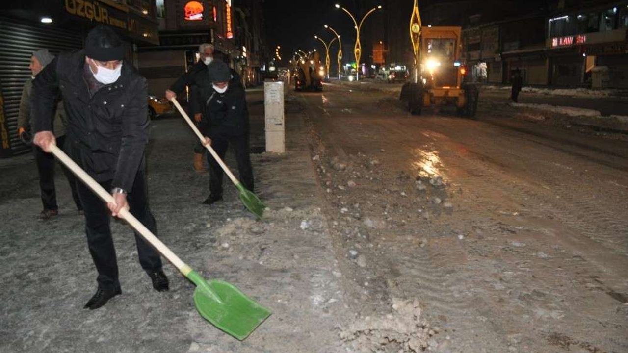 Yüksekova’da kar yağışı ile birlikte mahalle yollarını temizleyen, Yüksekova Belediyesi Fen İşleri Müdürlüğüne bağlı karla mücadele ekibi ilçenin en işlek caddesi olan Cengiz Topel Caddesinde kar temizleme çalışması yürüttü. Akşam saatlerinde büyük bir özveri ile çarşı merkezinde başlatılan kar temizleme çalışmasından önce zabıta müdürlüğüne bağlı trafik birimi çalışanları tarafından araçların geçişleri kontrolü bir şekilde sağlanırken, park halindeki araçların caddeden kaldırılması için anonslar yapıldı. Daha sonra başlayan çalışma ile birlikte iş makinelerinin kardan arındırdığı caddenin kaldırımları ise küreklerle temizlendi. Söz konusu cadde ve bağlı ara sokaklarda kar temizleme çalışmaları gecenin geç saatlerine kadar devam etti.